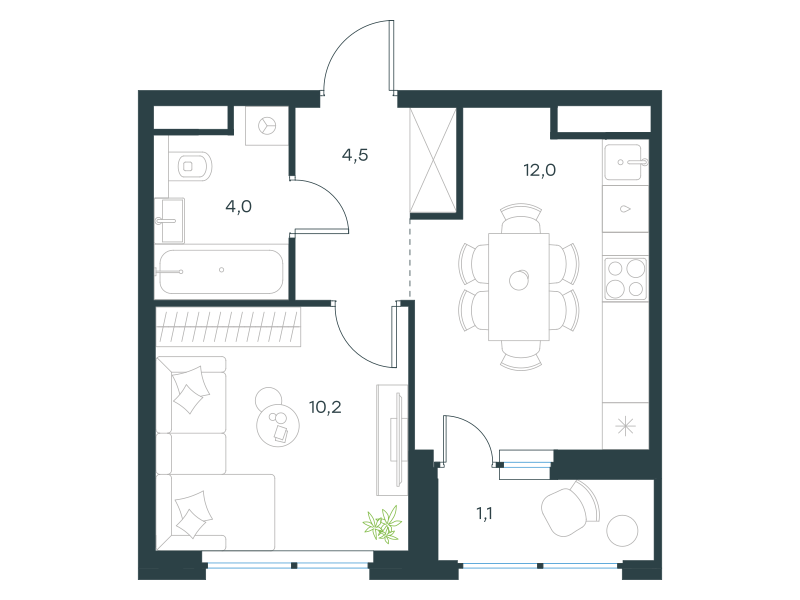 Однокомнатная квартира, 31.8 кв. м