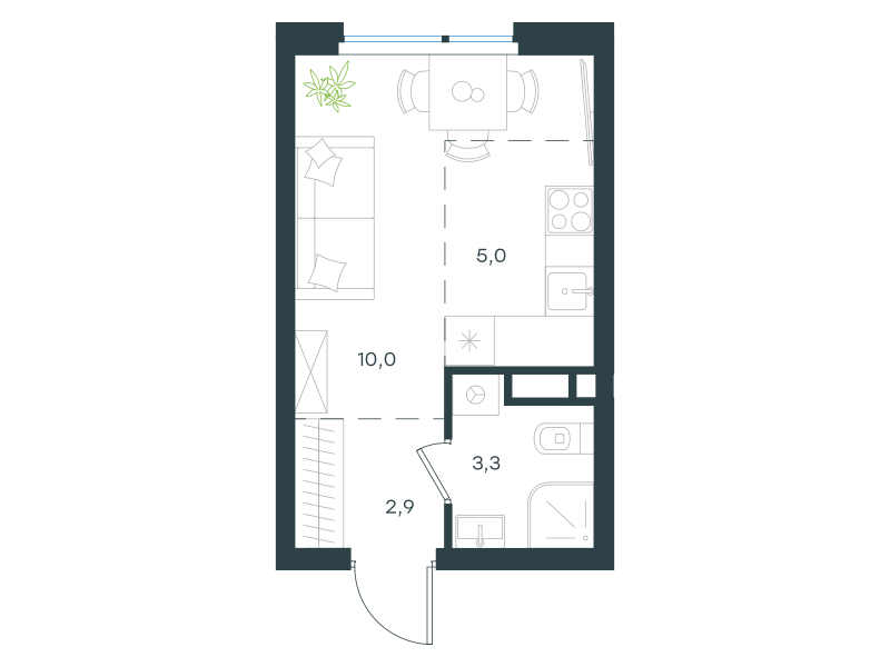 Студия-квартира, 21.2 кв. м