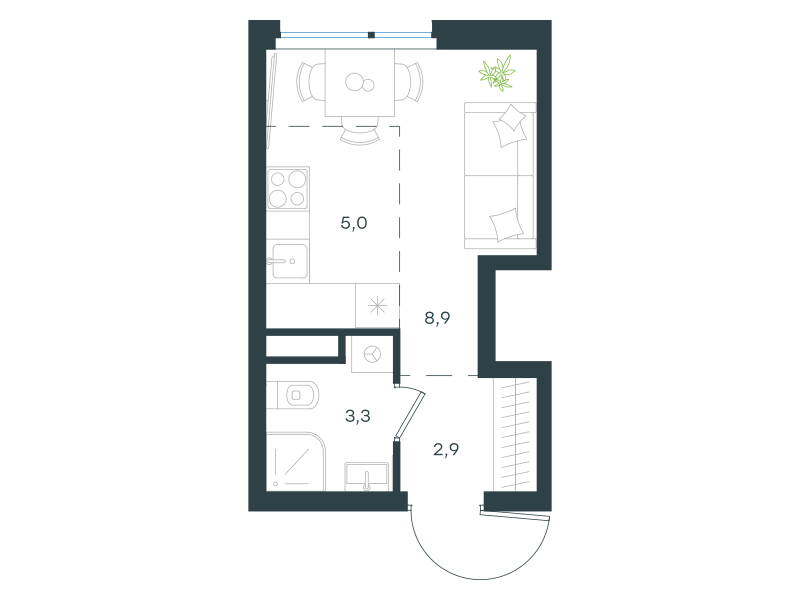Студия-квартира, 20.1 кв. м