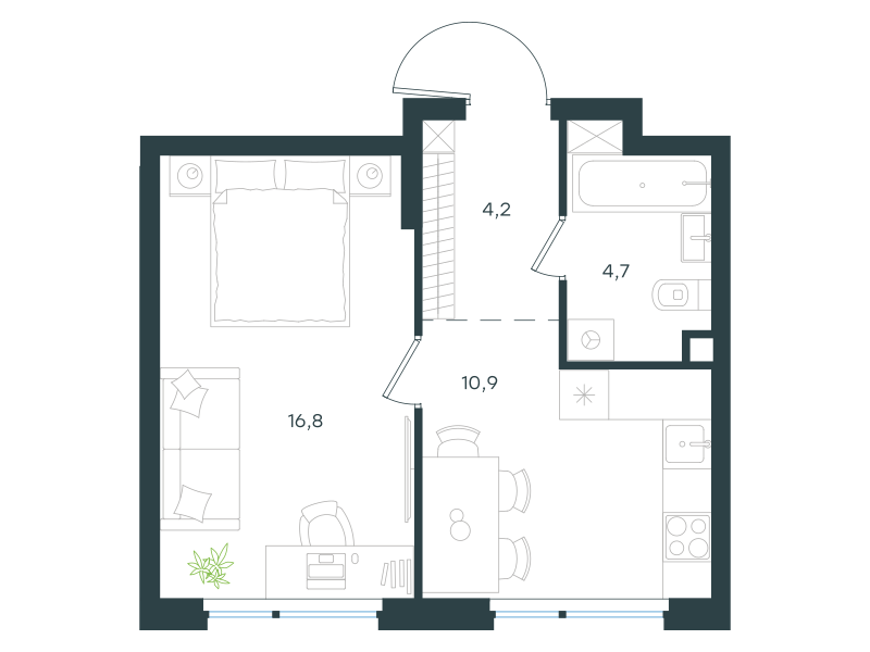 1 комнатная квартира,
