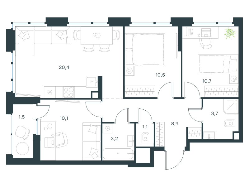 Трехкомнатная квартира, 70.1 кв. м