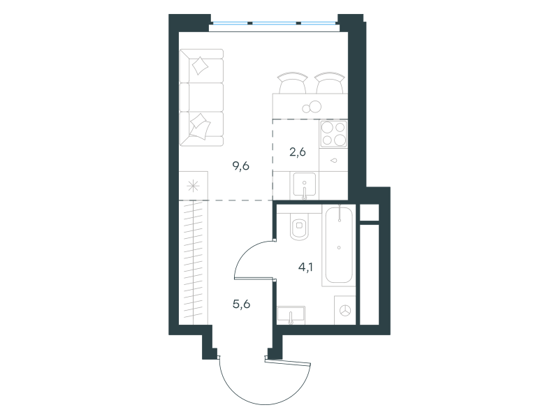 Студия-квартира, 21.9 кв. м