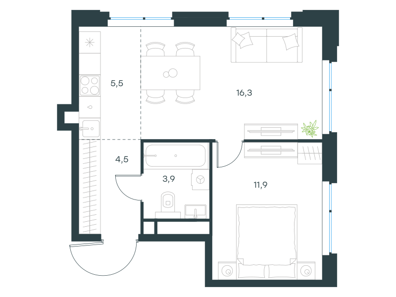 Комфорт, Корпус 9, 2 / 12 эт.