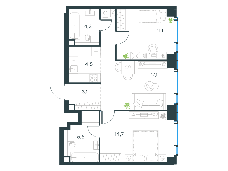 Район для покупки квартиры выбирали долго, Очаково-Матвеевский в итоге подошел больше всего. С транспортом проблем здесь нет, инфраструктура на высоте, много парков, зелени, так что решили жить здесь. Зато с комплексом определились быстро, Мичуринский – самый оптимальный вариант по концепции, и цена пока хорошая, так как строительство еще в начальной стадии. В итоге купили евротрешку в черновом варианте, ремонтом будем заниматься сами.
