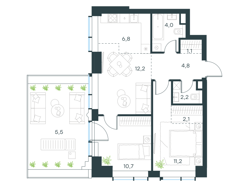 квартира, 60.6 м2