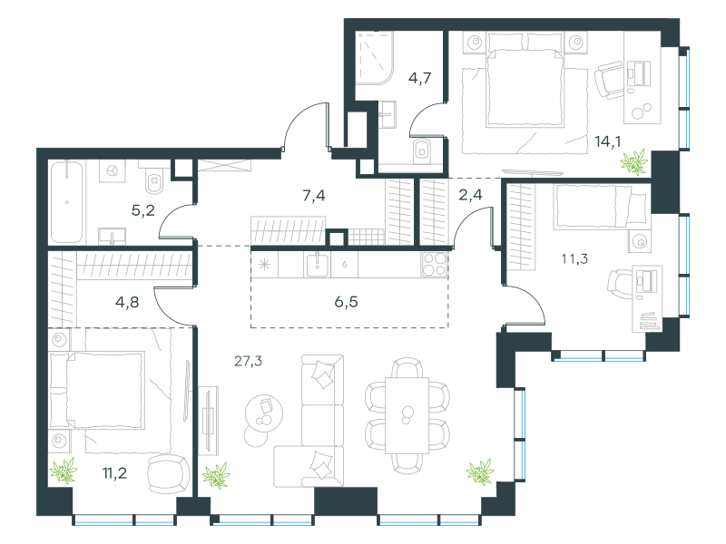 Шикарный проект! Понравилось, как сделали внутреннюю территорию, и что заложили в озеленение. Думаю, что ирга Ламарка в цветении будет своего рода сакурой этого уютного комплекса. Для деток тоже классно продумали, сделали такие площадки под разный возраст интересные. Вообще все так довольно аккуратно и стильно тут.