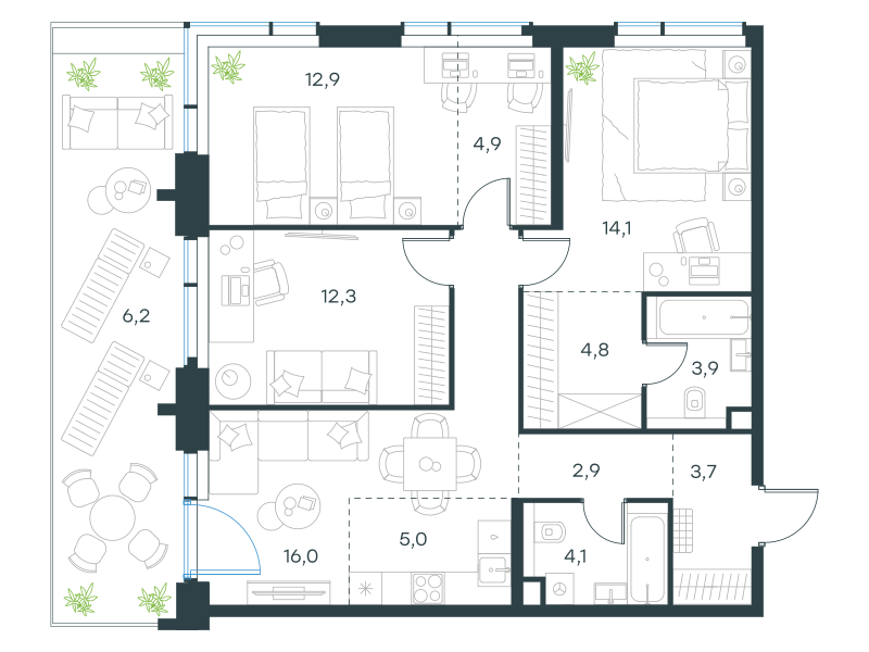 квартира, 90.8 м2