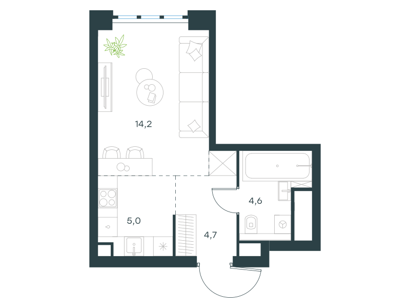 Студия-квартира, 28.5 кв. м