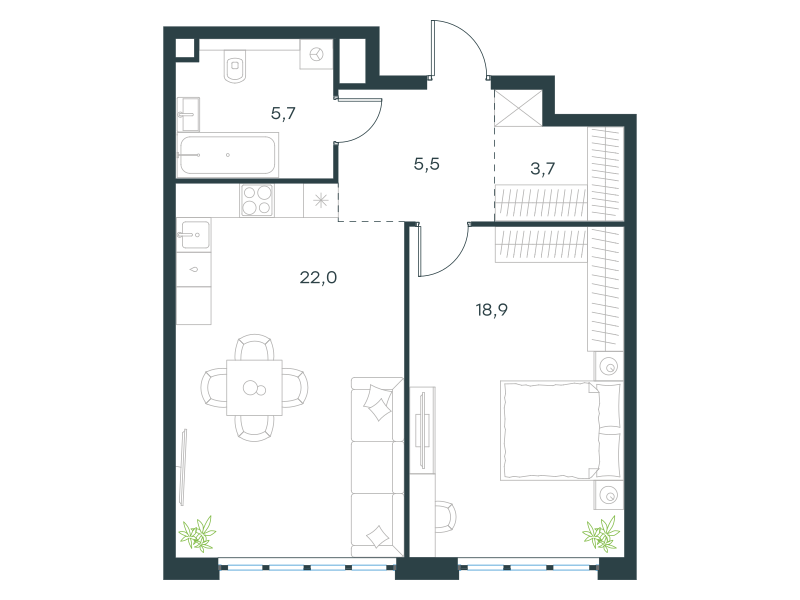 квартира, 55.8 м2