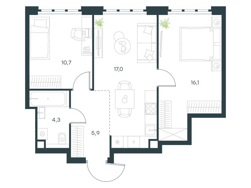 Комфорт, Корпус 26/1, 2 / 9 эт.