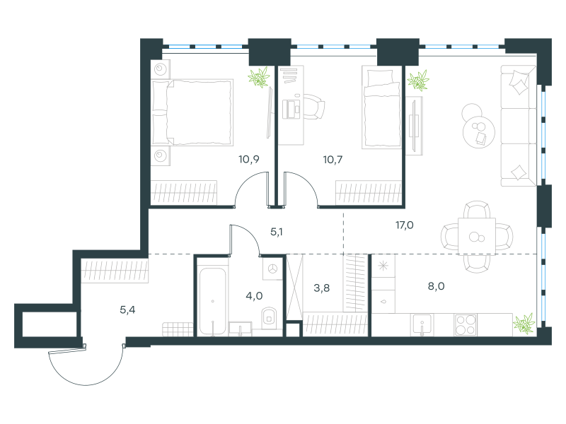 Комфорт, Корпус 26/1, 2 / 14 эт.