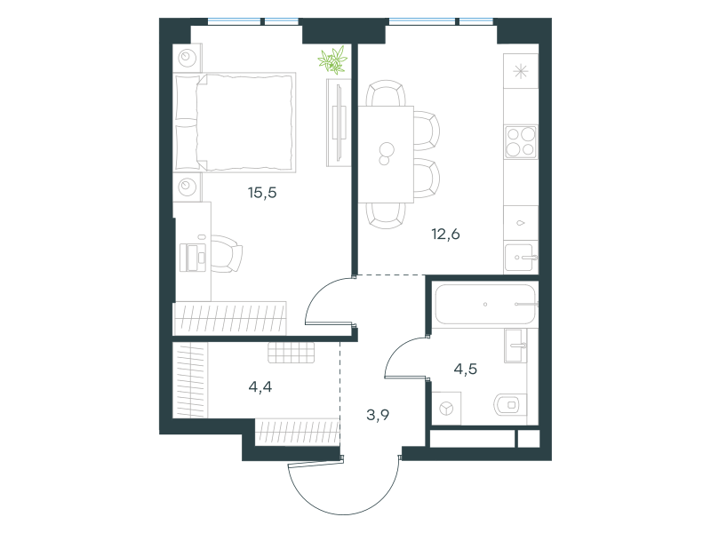 Однокомнатная квартира, 40.9 кв. м