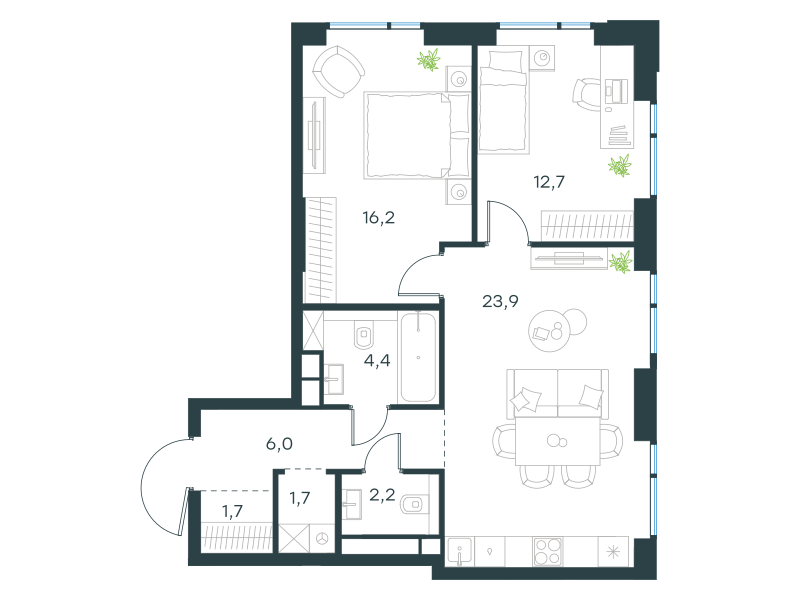 квартира, 68.8 м2