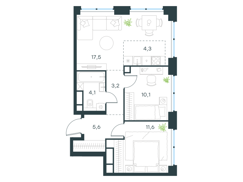 квартира, 56.4 м2
