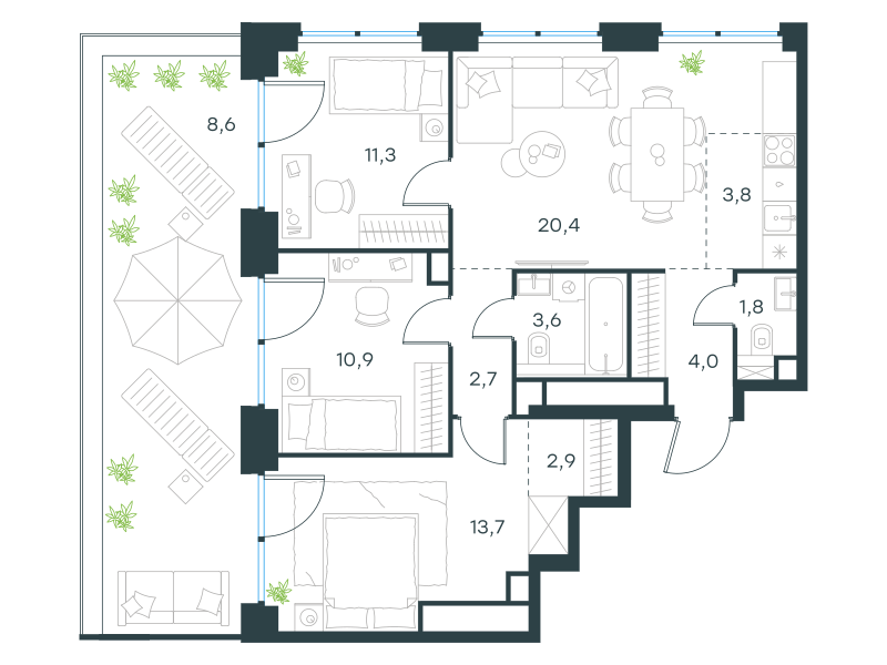 Рост стоимости к сроку сдачи похожей квартиры в Левел Причальный составил 97%