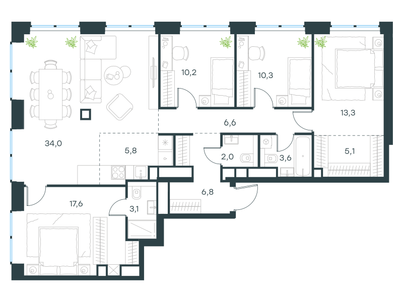 Пятикомнатная квартира, 118.4 кв. м