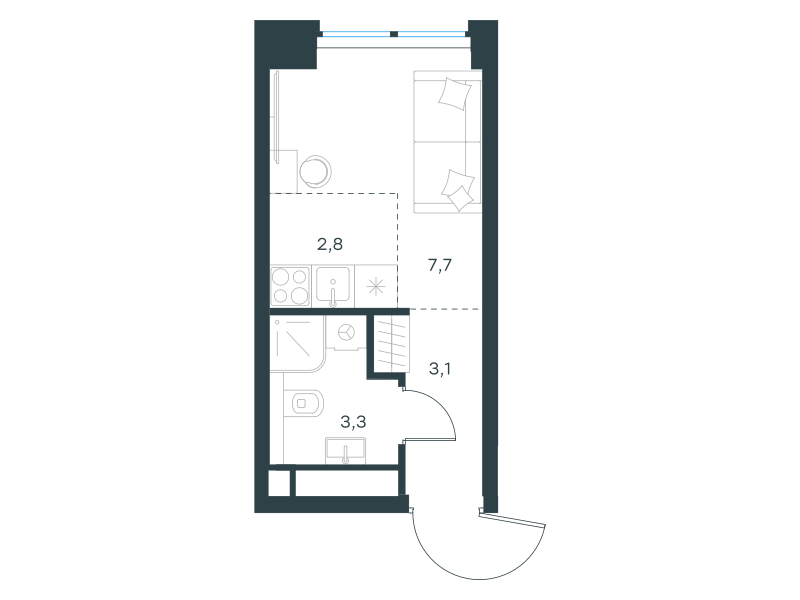 Студия-квартира, 16.9 кв. м
